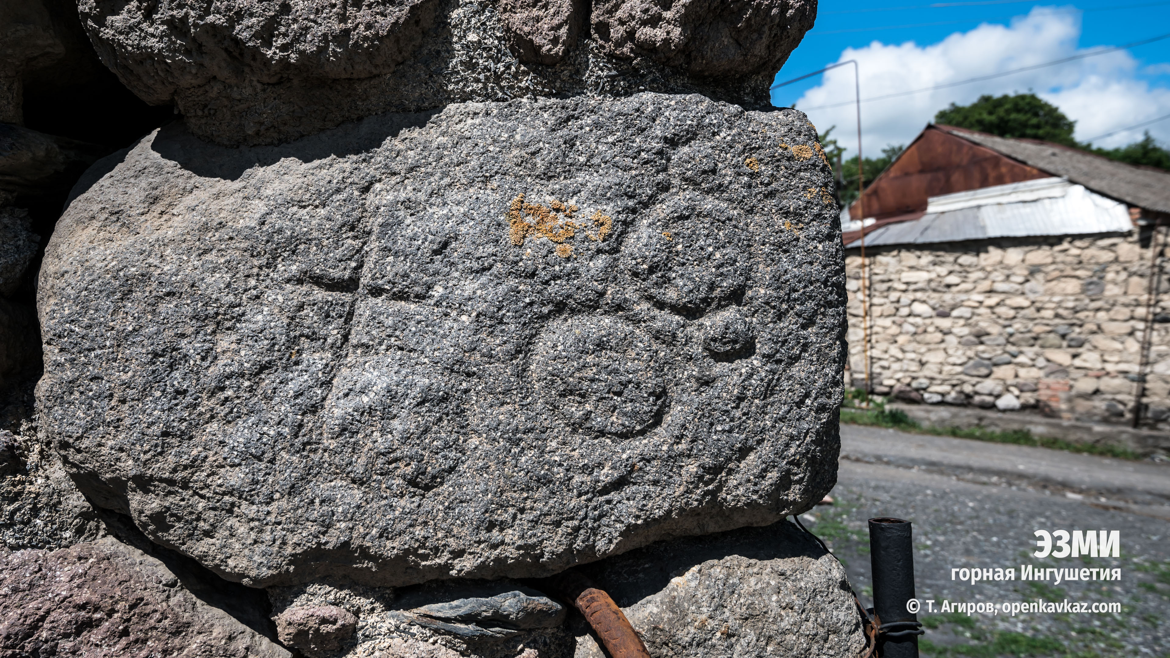 Хотя село Эзми сейчас входит в состав Северной Осетии, исторически, культурно, и транспортно оно связано с Ингушетией: в него можно попасть только из Джейраха. В прошлом тут были возведены два башенных комплекса с боевыми башнями. Сейчас сохранились лишь две жилые. Они расположены в центре села, у автодороги. На углах башен можно увидеть многочисленные знаки - петроглифы. Один их них, солярный знак, является символом Ингушетии и изображен на флаге Республики.