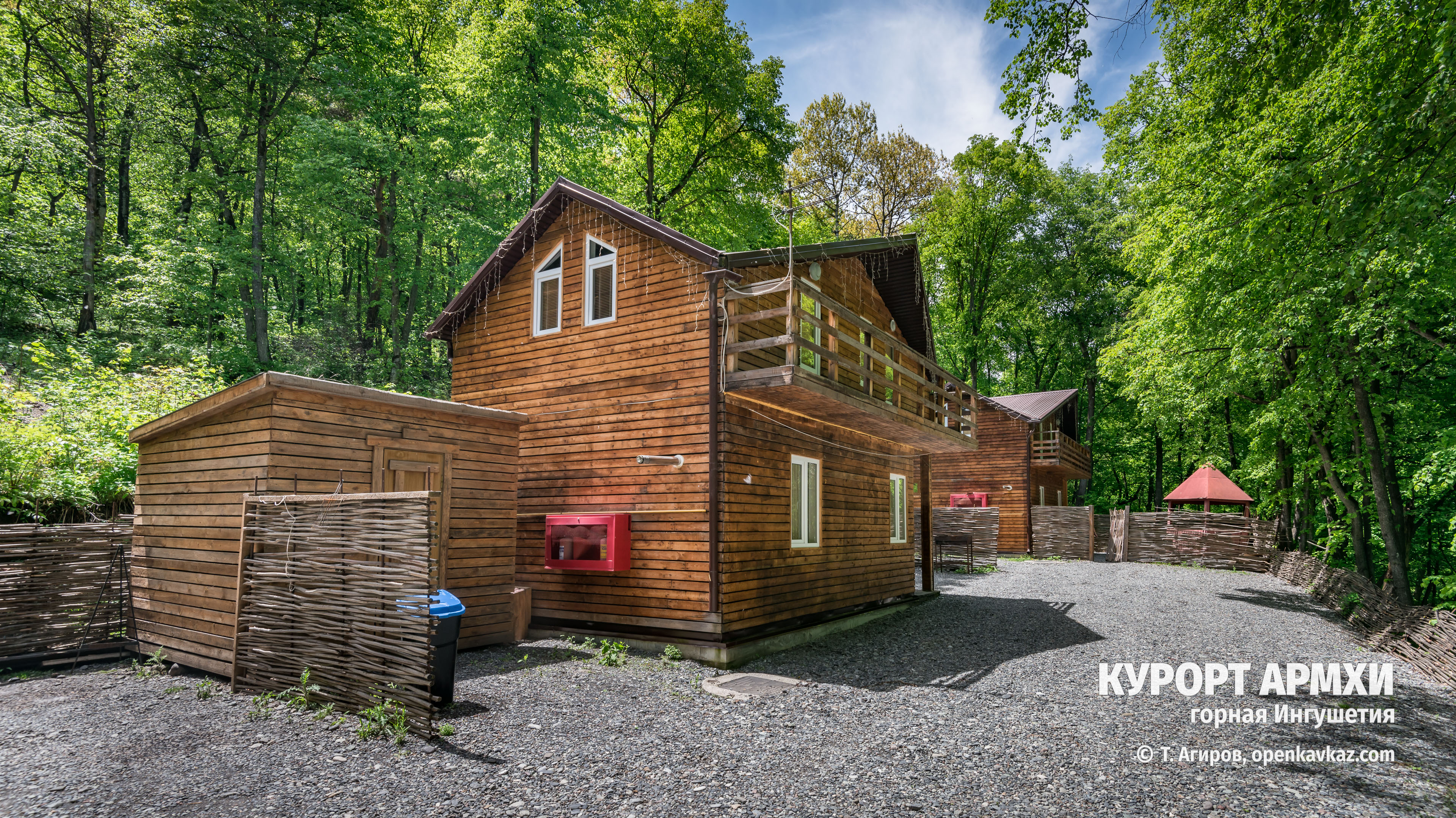 На территории курорта Армхи построено семь двухэтажных комфортных пятиместных коттеджей со всеми удобствами, включая кухню, систему отопления, мангальную зону. Один из домов имеет баньку.