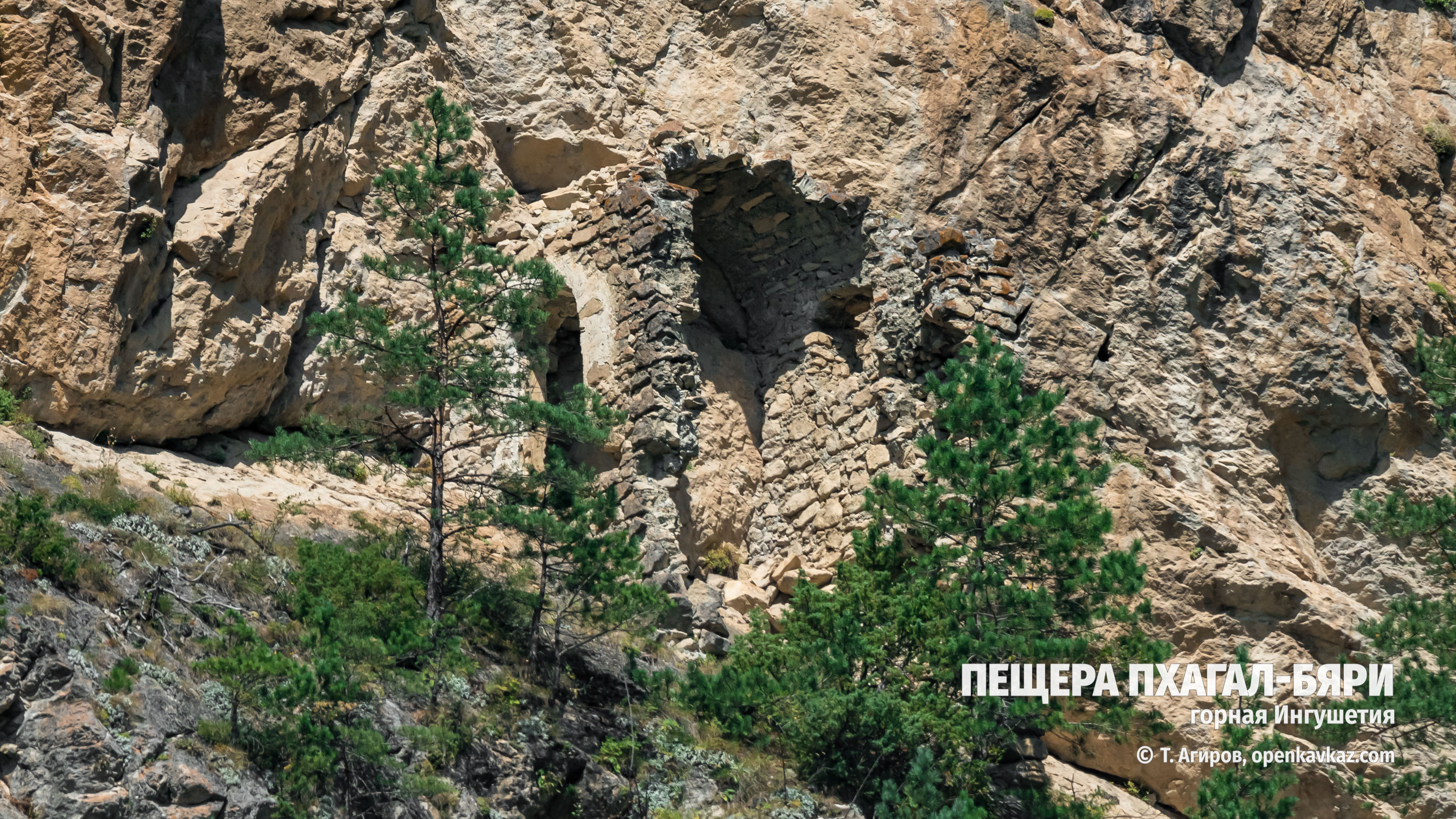 Расположена на горном склоне над автодорогой в Ассинском ущелье, недалеко от Галгайской заставы (замка-крепости Гагиевых). Крупная пещера была закрыта каменной кладкой, также сохранилась другая часть стены с арочным проёмом. В прошлом рядом с башней проходила дорога. Пещеру ассоциируются с героем ингушского фольклора Пхагал-Бяри. Также предполагается, что в пещере мог находиться управляющий заставой, присматривающий за дорогой.